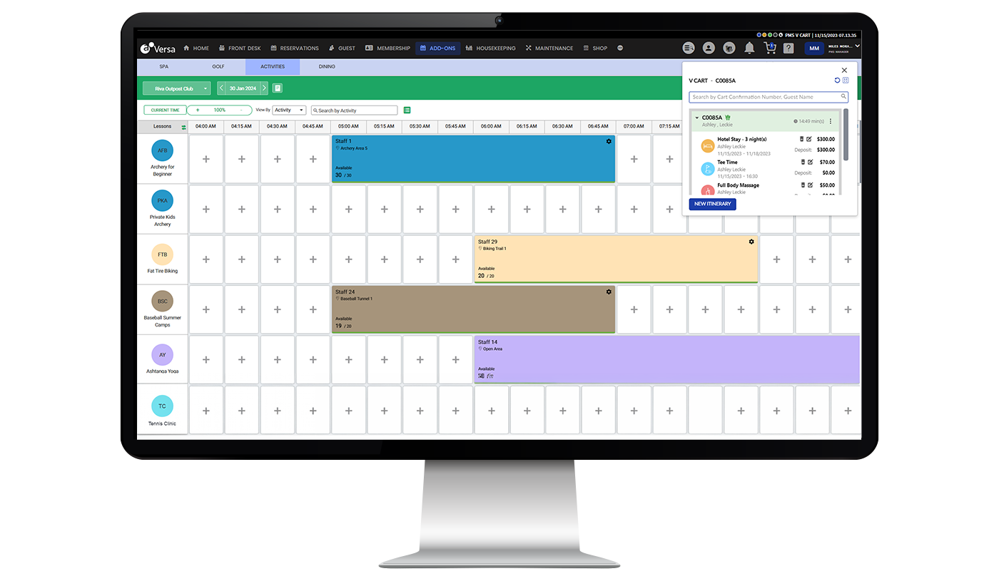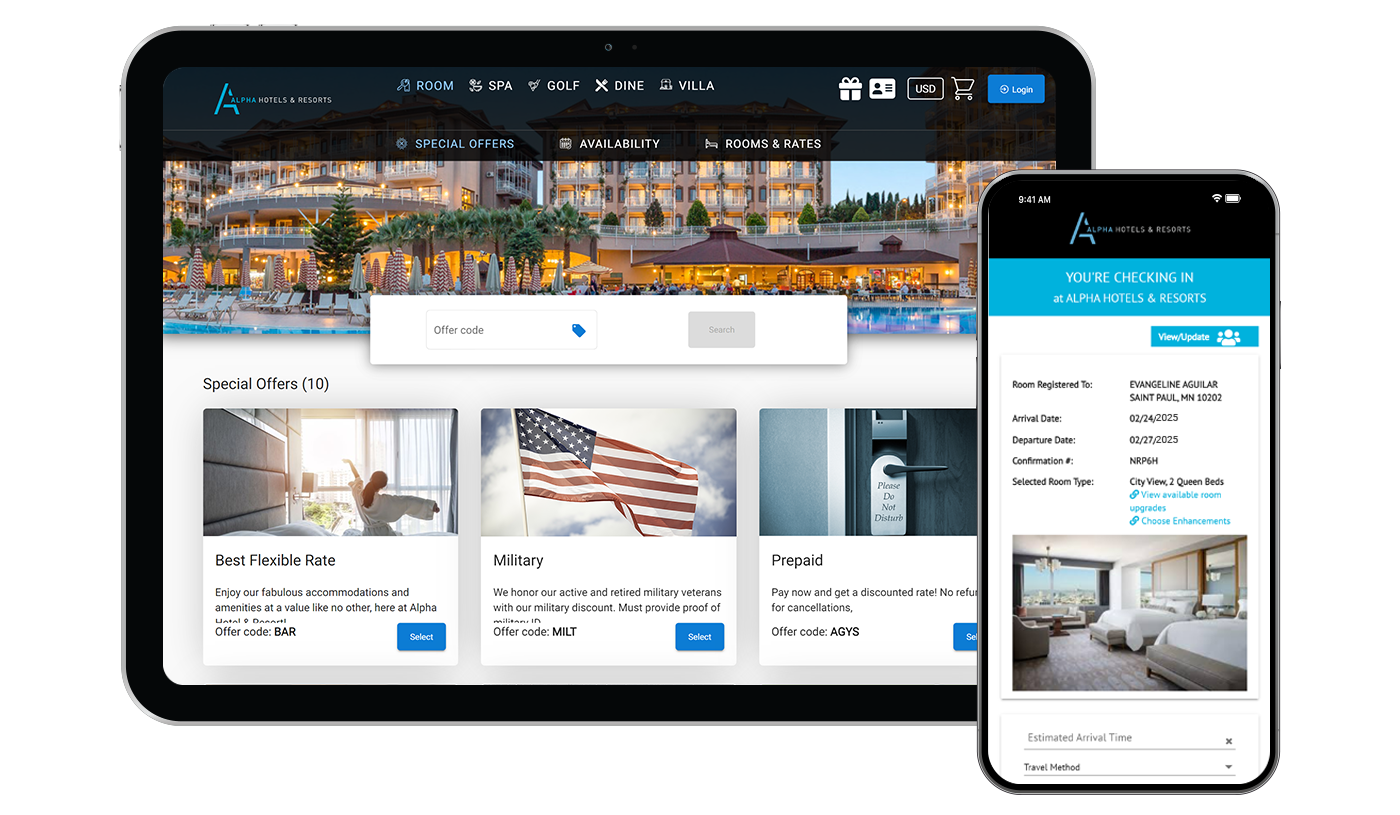 Guests can book rooms, spa, golf, dining, and activities in one seamless transaction. A single confirmation and synchronized availability simplify planning and drive higher-value stays.
