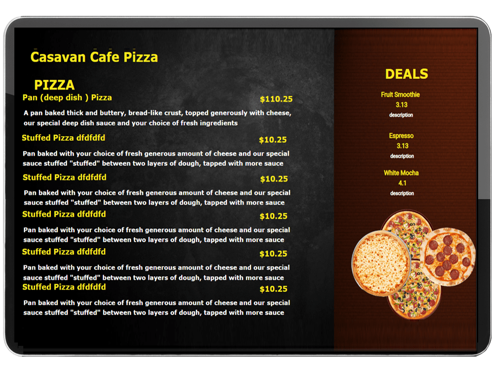 +1 877 369 6208InfoGenesis のバックエンドにリンクされた柔軟なグラフィカルメニューとオファー表示で、最新のアイテムと価格を表示し、会場の収益を高めます。
